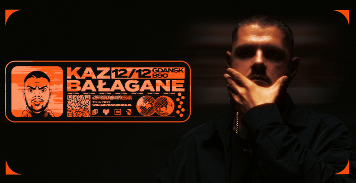 12 grudnia 2025 roku w gdańskim klubie B90 wystąpi jeden z najbardziej rozpoznawalnych i bezkompromisowych głosów polskiego rapu – Kaz Bałagane. Koncert w ramach trasy promującej jego najnowszy album „A nie mówiłem?” to wydarzenie, na które czekają wszyscy fani nowej szkoły hip-hopu. To będzie O.G. solowy występ artysty w jego najlepszej formie – pełen energii, szczerości i ulicznego klimatu.